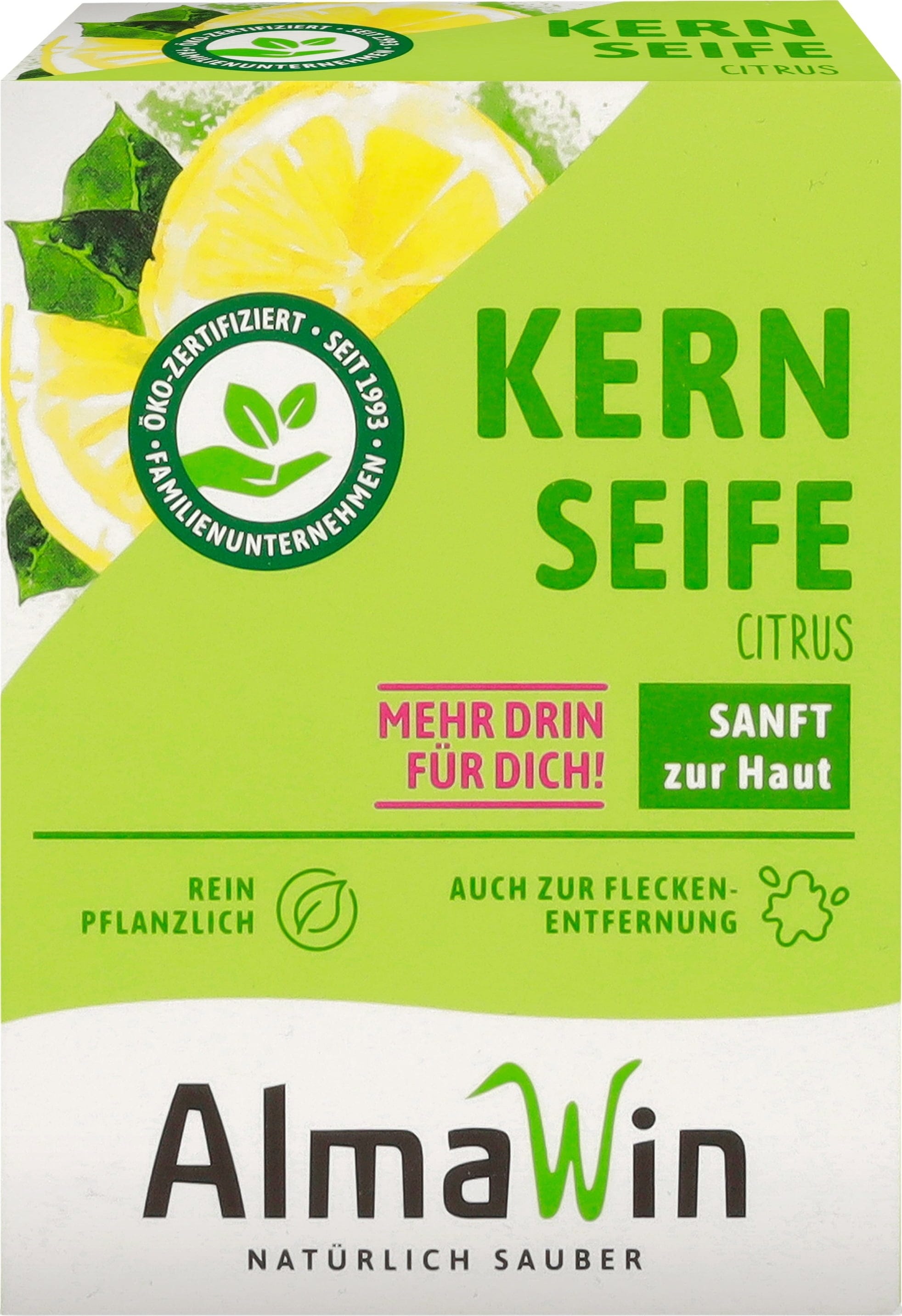 El jabón de Almawin garantiza la mejor calidad en cuanto a protección del medio ambiente, protección dermatológica y eficacia. La receta básica contiene jabón vegetal seleccionado y materias primas vegetales y minerales procedentes de la agricultura ecológica. Este jabón puede usarse para el tratamiento corporal normal o para el tratamiento de manchas.