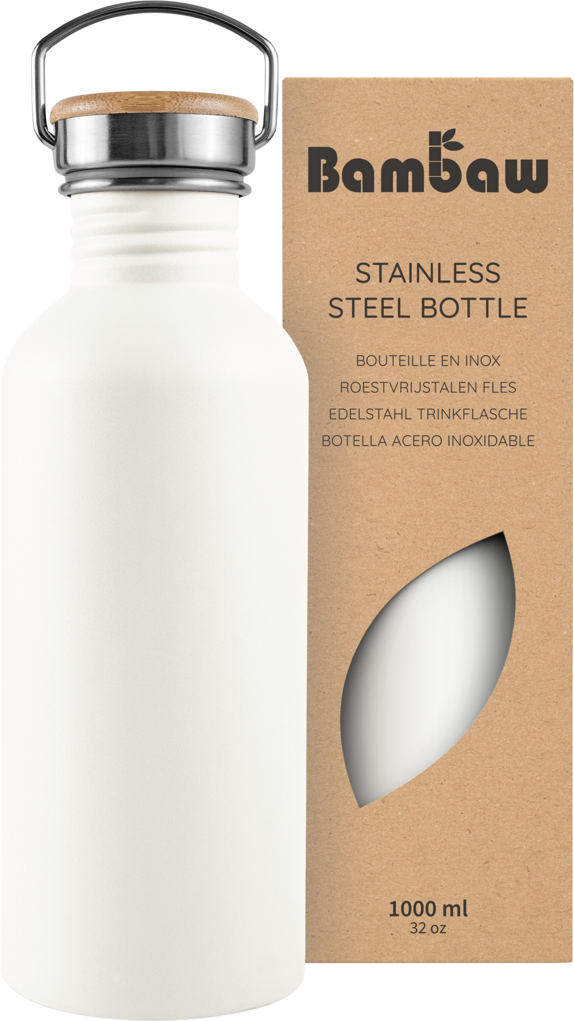 Bambaw Botella de Acero Inoxidable 1000 ml, Polar White