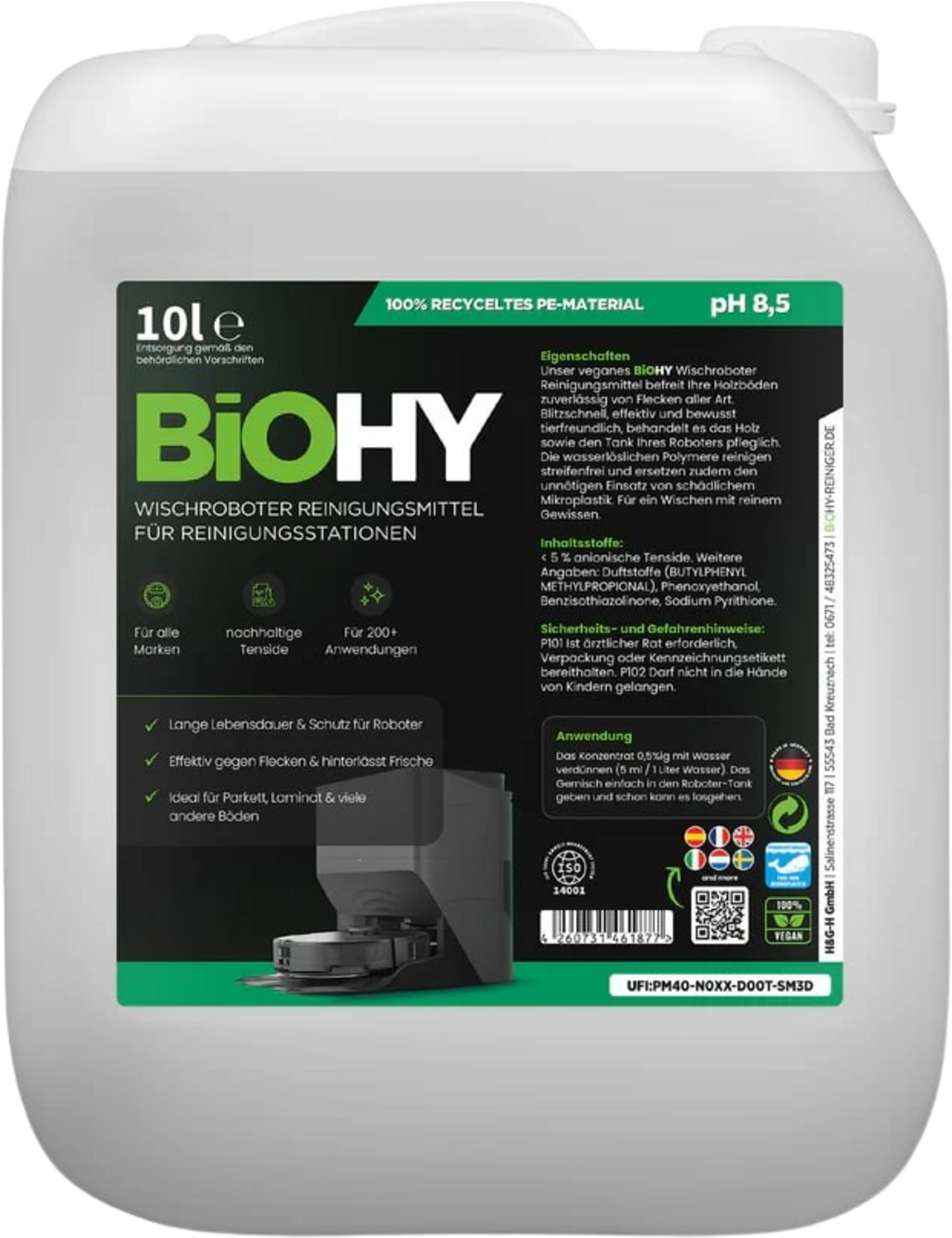 Este detergente concentrado es apto para cualquier tipo de robot limpiasuelos y garantiza una limpieza sin rayas en muy poco tiempo. Se puede utilizar sobre todas las superficies lavables, como parquet, azulejos, madera, PVC y piedra. El limpiador concentrado también tiene efecto antideslizante y tiene una formulación vegana y biodegradable.