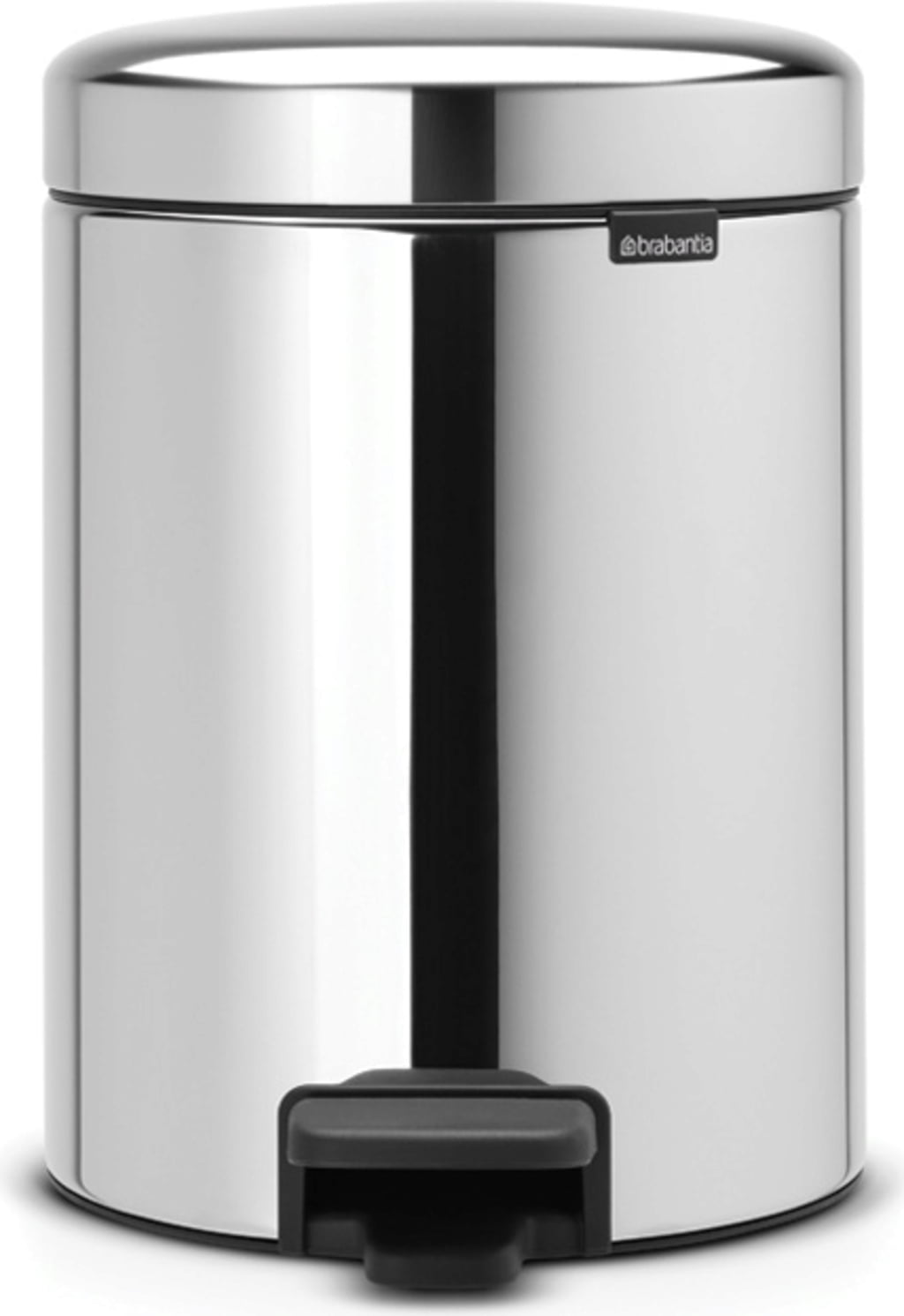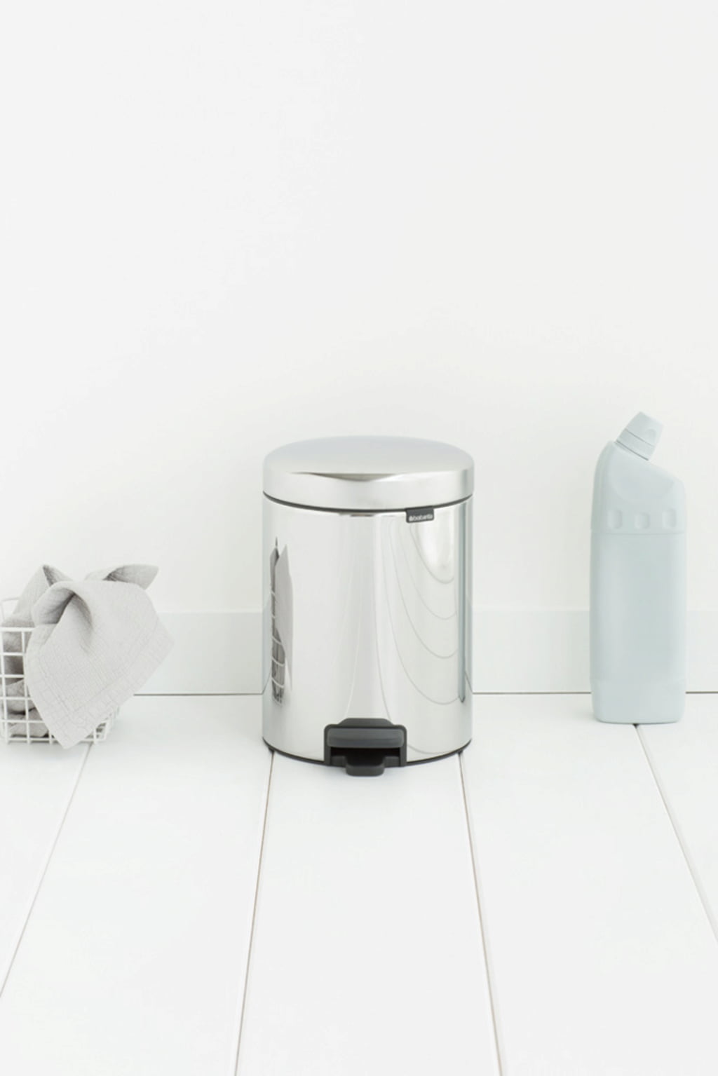 brabantia Cubo con Pedal Newicon, 5 Litros, Cubo Interior de Plástico, Brilliant Steel