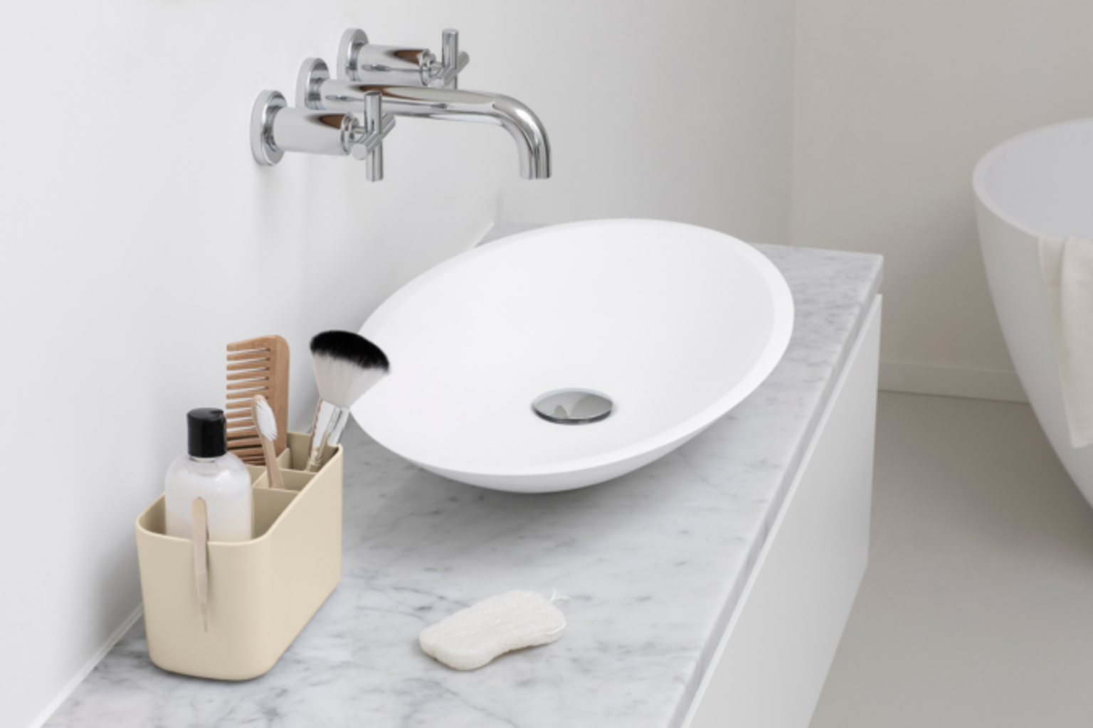 Gracias a este práctico organizador, los objetos y accesorios para el cuidado personal se pueden almacenar de forma ordenada tanto en la ducha como en el lavabo.