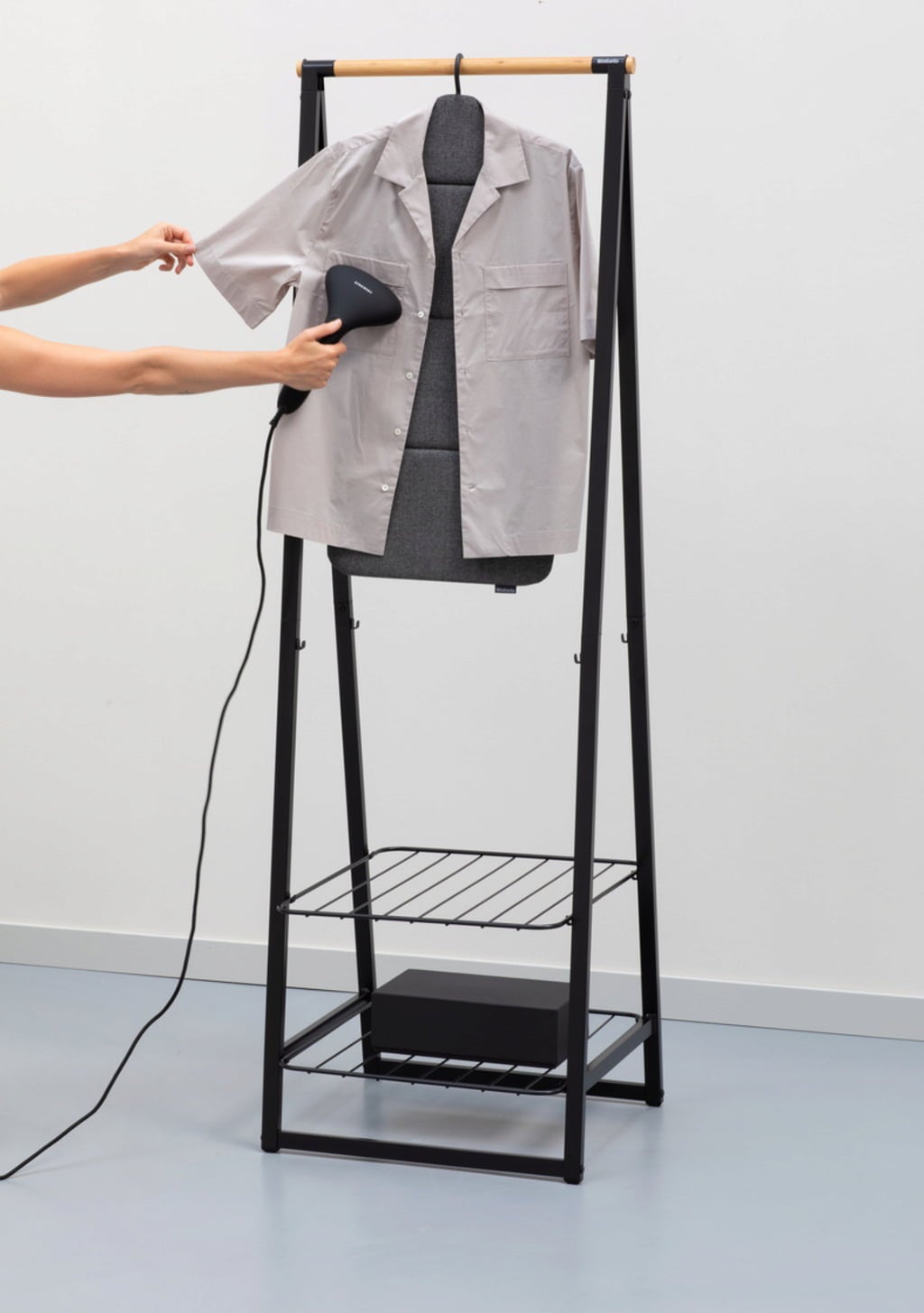 Un accesorio muy útil para quienes prefieren el planchado a vapor vertical en lugar de la clásica tabla de planchar. La percha tiene un acolchado para planchar la ropa al vapor y se puede plegar cuando ya no se necesite para ahorrar espacio.