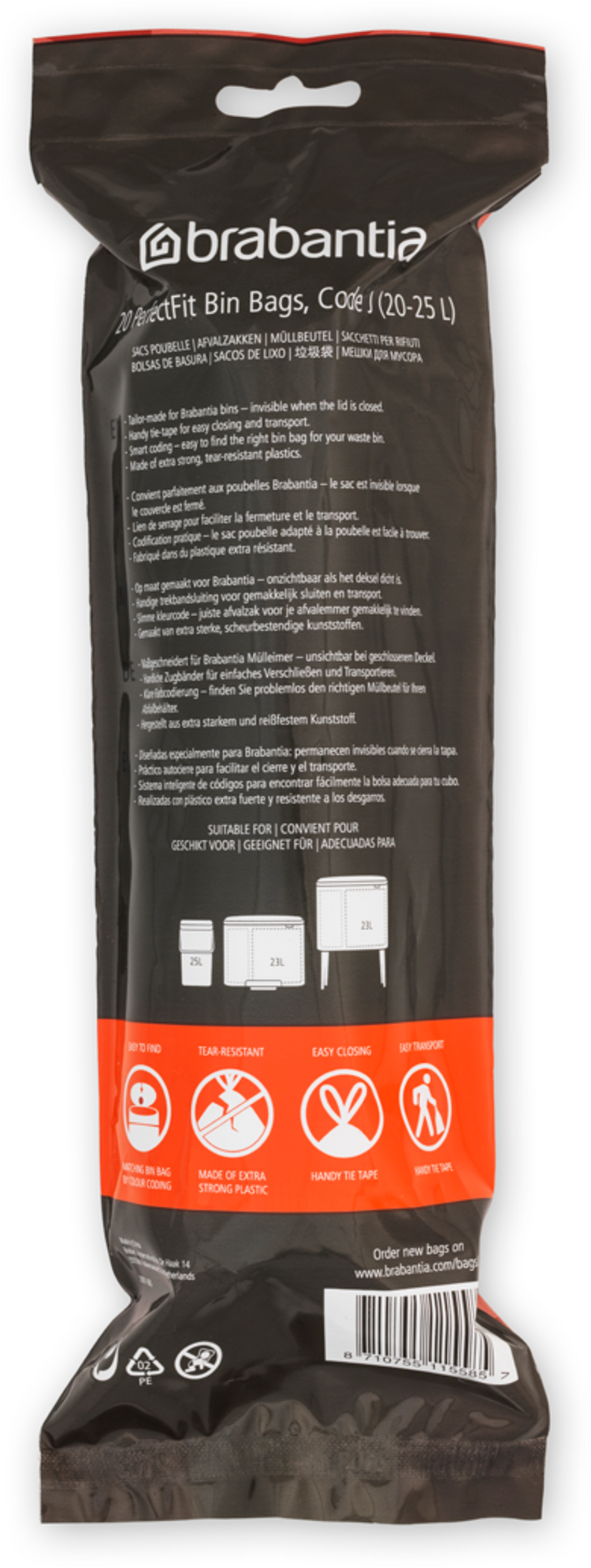 brabantia Rollo de Bolsas de Basura PerfectFit para Bo Touch Bin, 20-25L (J) - 20 Unidades
