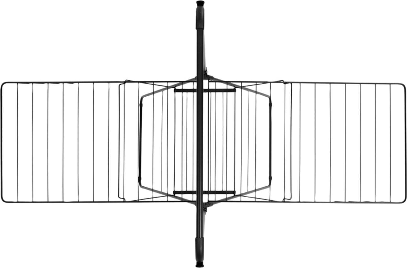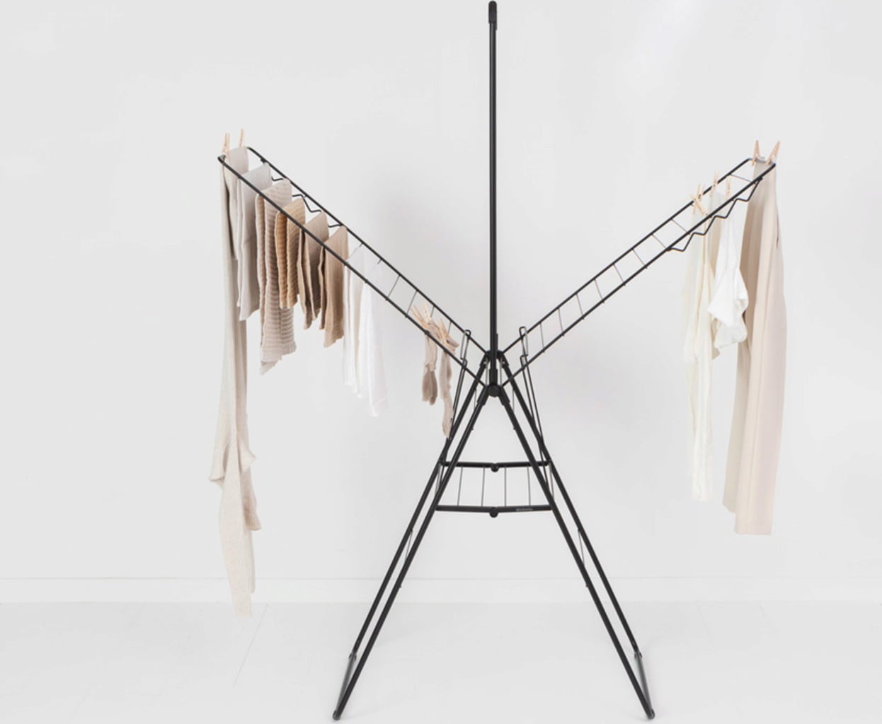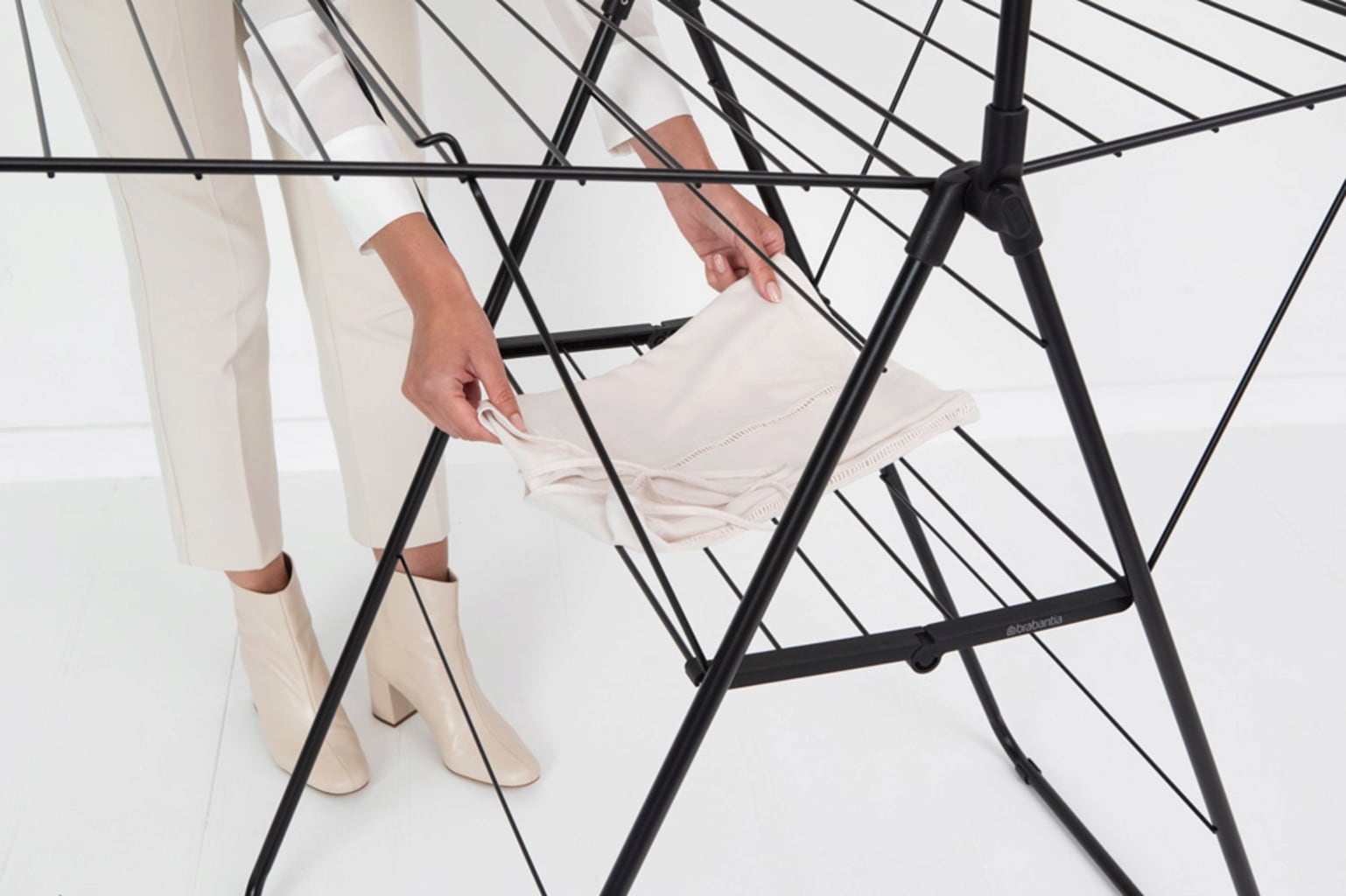 Este tendedero de alta calidad fabricado en acero resistente impresiona no solo por sus amplias dimensiones, sino sobre todo por su ingenioso diseño con numerosos detalles prácticos y funcionales. El accesorio ofrece hasta 25 metros de espacio para prendas pequeñas y grandes, es extremadamente flexible gracias a los brazos ajustables y se puede abrir y guardar fácilmente para ahorrar espacio.