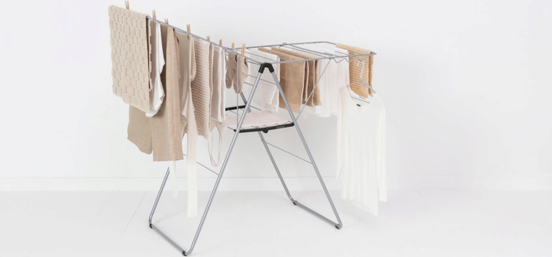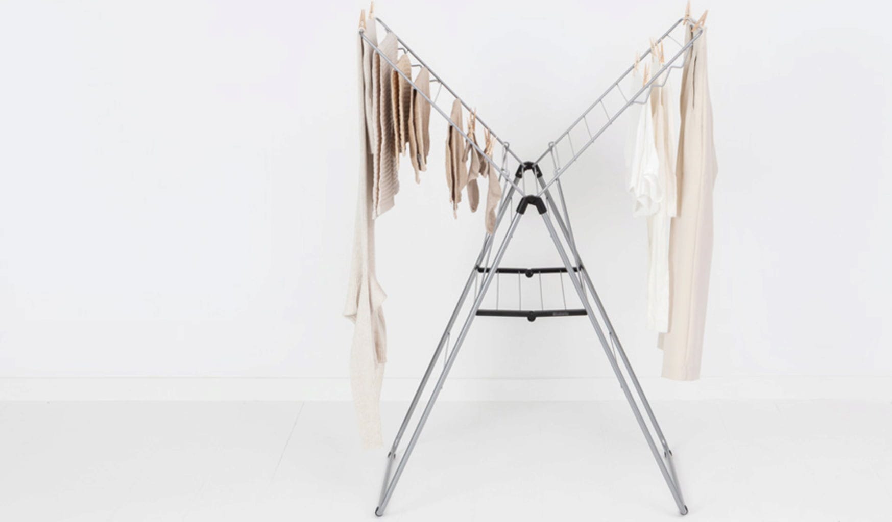 Este fantástico tendedero de ropa fabricado en acero resistente impresiona no solo por la excelente calidad de los materiales y la mano de obra, sino sobre todo por su diseño inteligente con detalles prácticos y funcionales. Ofrece hasta 20 metros de espacio para prendas pequeñas y grandes, es extremadamente flexible gracias a los brazos ajustables y se puede plegar y guardar fácilmente para ahorrar espacio.