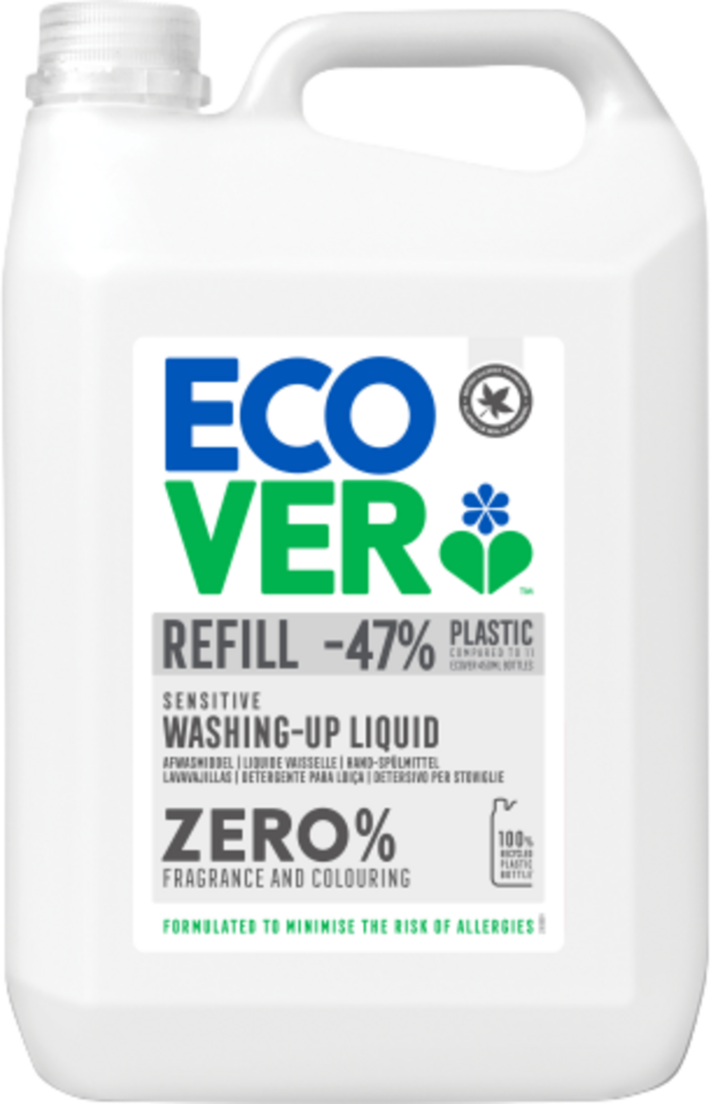 Ecover Detergente Lavavajillas a Mano Zero, 5 l