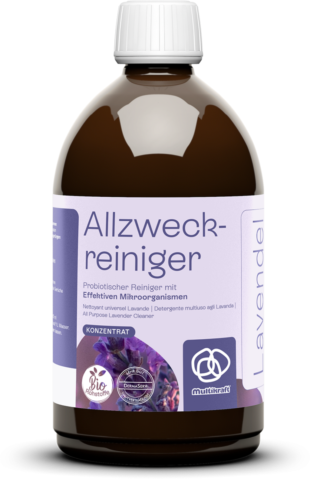 El limpiador multiusos eMC es versátil en el hogar y se puede utilizar para todas las superficies, con su delicado aroma a lavanda. Los microorganismos probióticos contenidos descomponen la suciedad y los depósitos de forma natural, neutralizan los olores y crean un clima ambiental saludable. Los microorganismos efectivos se adhieren a las superficies y se reactivan cuando se vuelve a ensuciar.