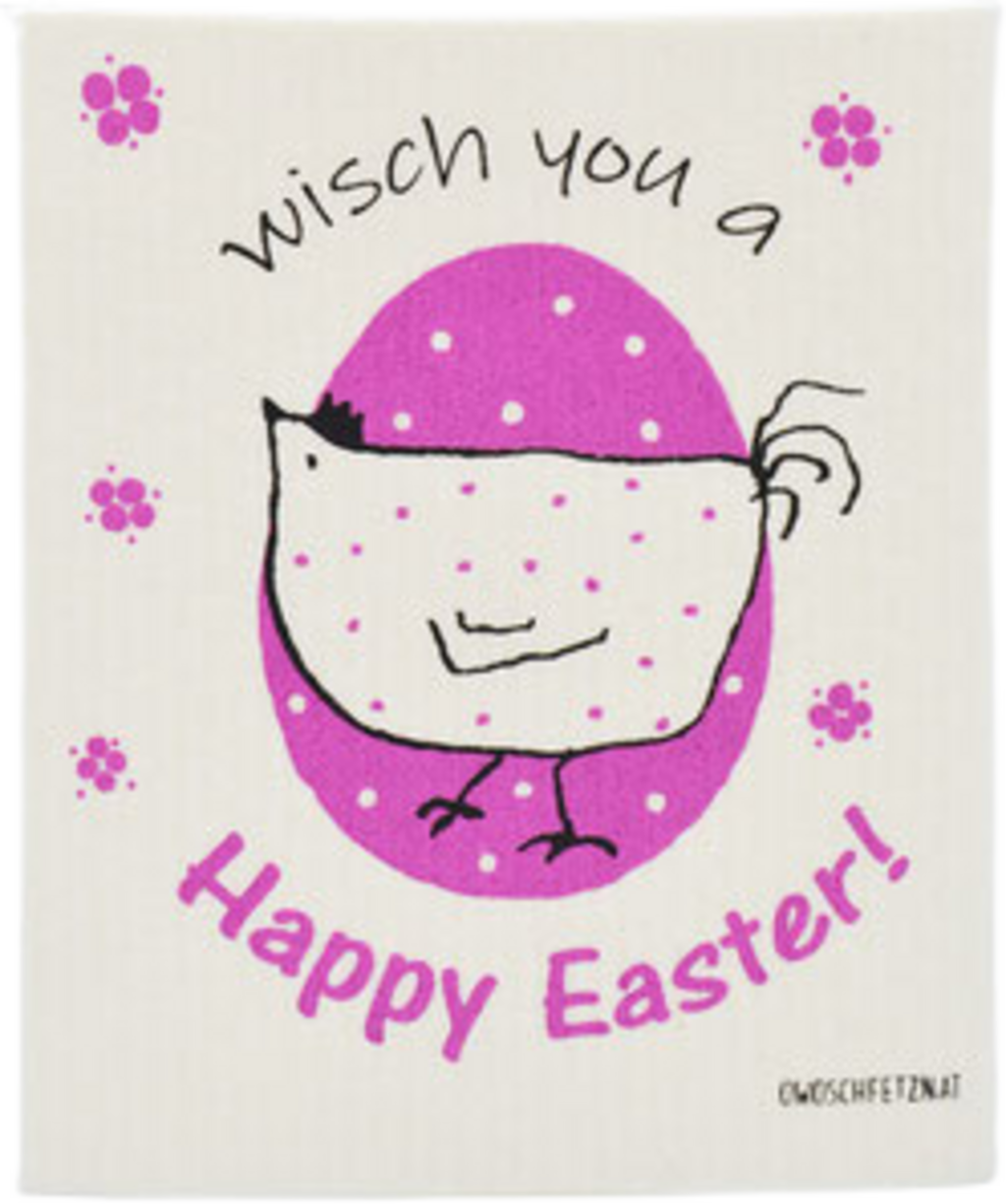 OWOSCHFETZN Schwammtuch "Happy Bayeta - Happy Easter Berta HenHenne Berta", Rosa