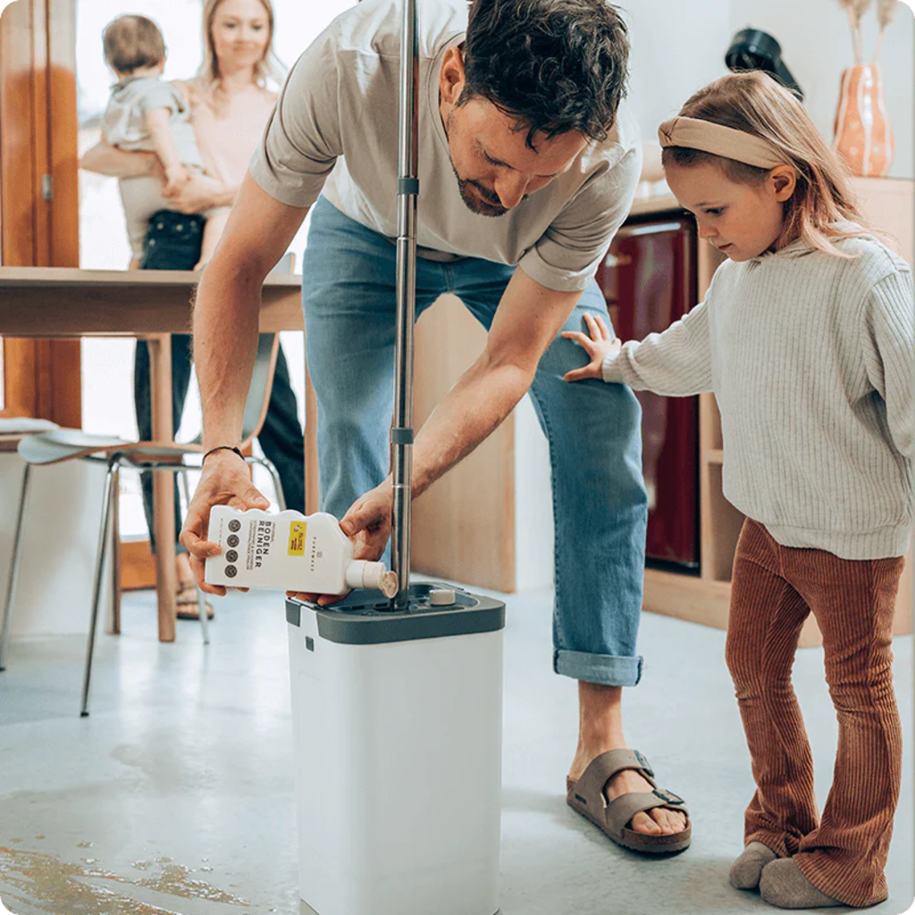 - Suelo ligero: añadir unos 40 ml a 10 L de agua tibia.