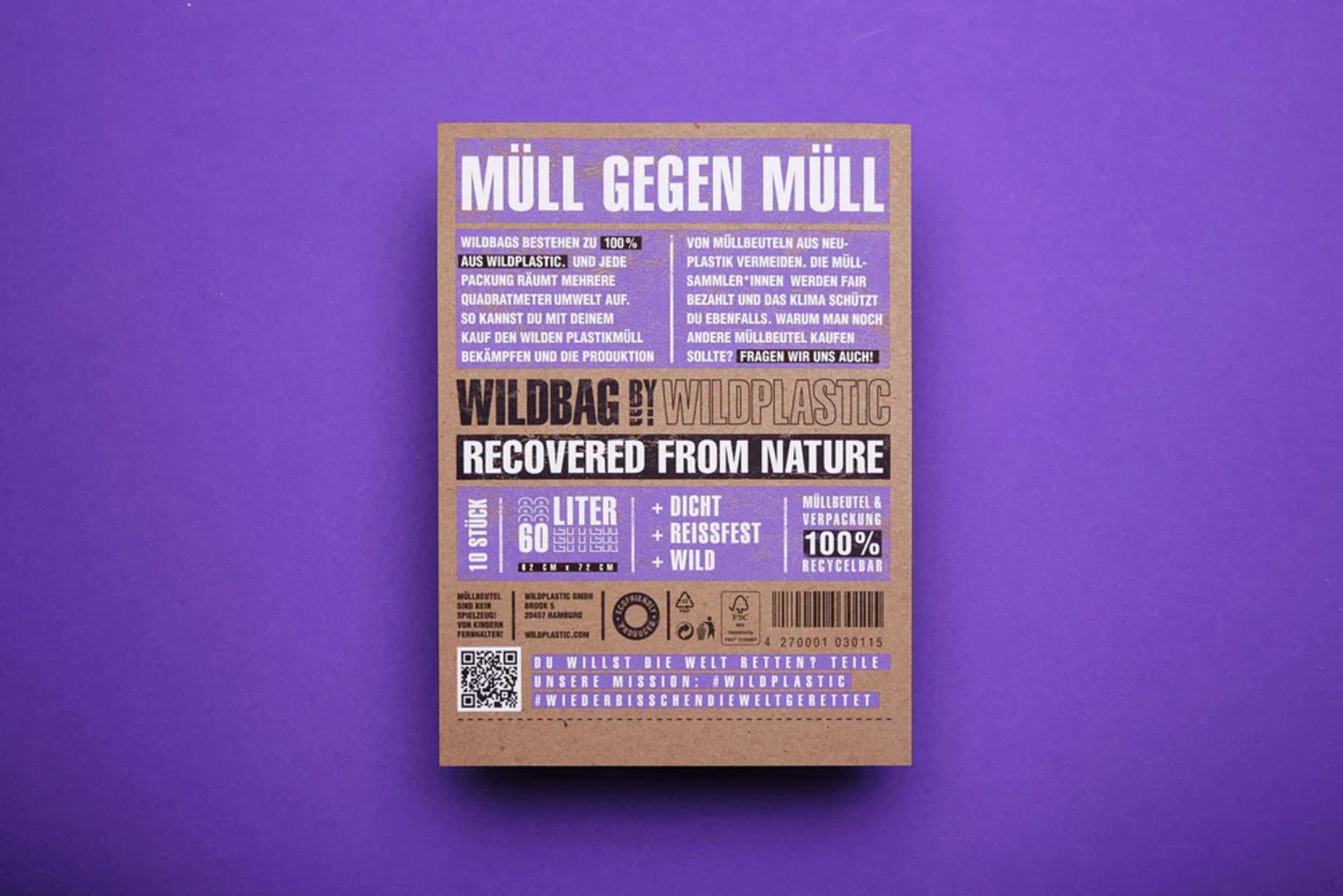 WILDPLASTIC Bolsas de Basura Wildbag de 60 litros, 10 bolsas