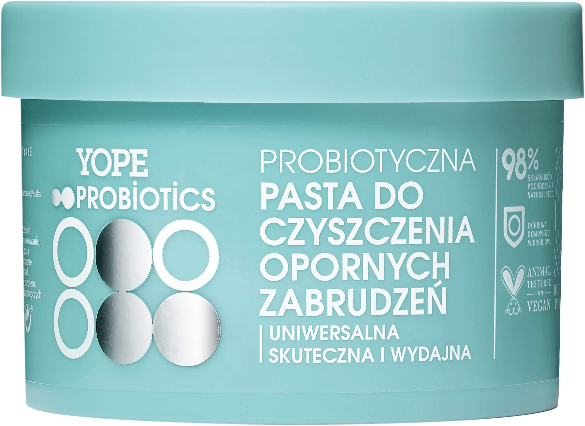Cuando los detergentes tradicionales no son suficientes, la Probiotic Natural Cleaning Paste de YOPE entra en acción y elimina la suciedad incluso de las grietas más profundas y las incrustaciones más rebeldes. Tanto en la cocina como en el baño, esta fórmula de alto rendimiento penetra en la estructura de las superficies, disolviendo las impurezas justo donde tienden a fijarse con mayor tenacidad.